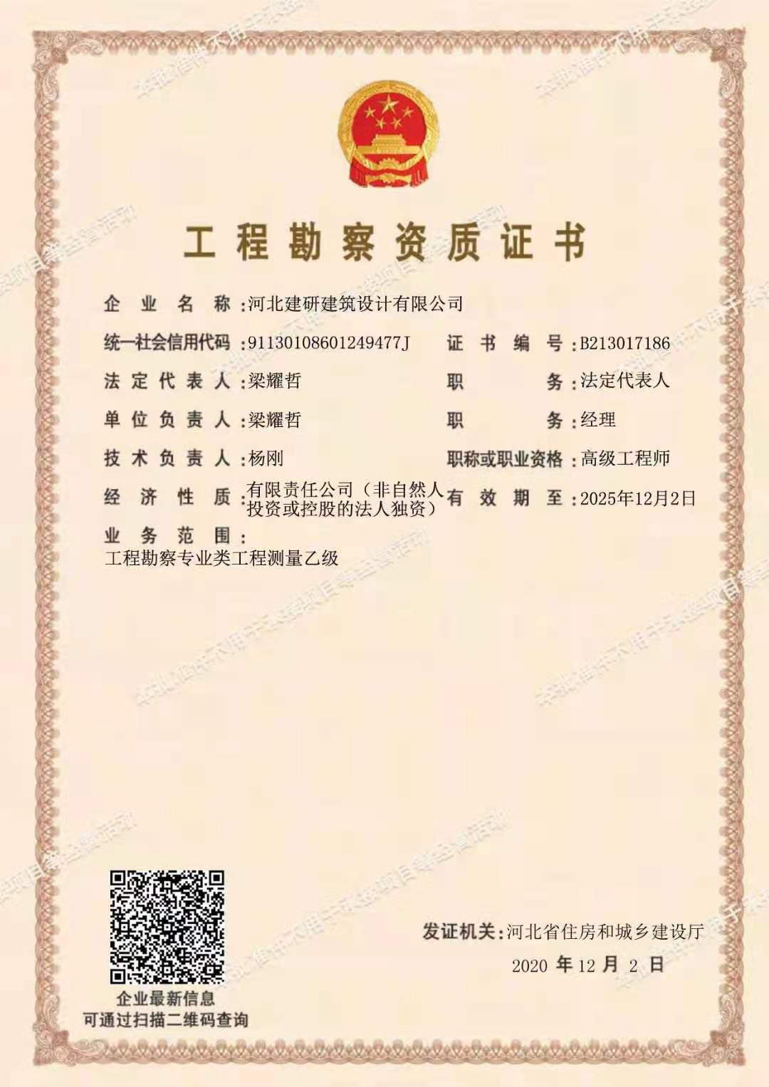 既有建筑地基基礎檢測技術標準JGJ/T422-2018,,被定為2020年河北省工程勘察設計項目壹等成果。(證書編號:2020-1-60)由河北省工程勘察設計咨詢協會頒發
